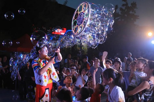 小丑泡泡秀表演环节则最受小朋友们喜爱,大家的欢呼声此起彼伏,现场氛围一度达到高潮。所有家人齐聚一堂,共同寻觅美好,一场专属于天地源人的盛夏狂欢正火热上演!
